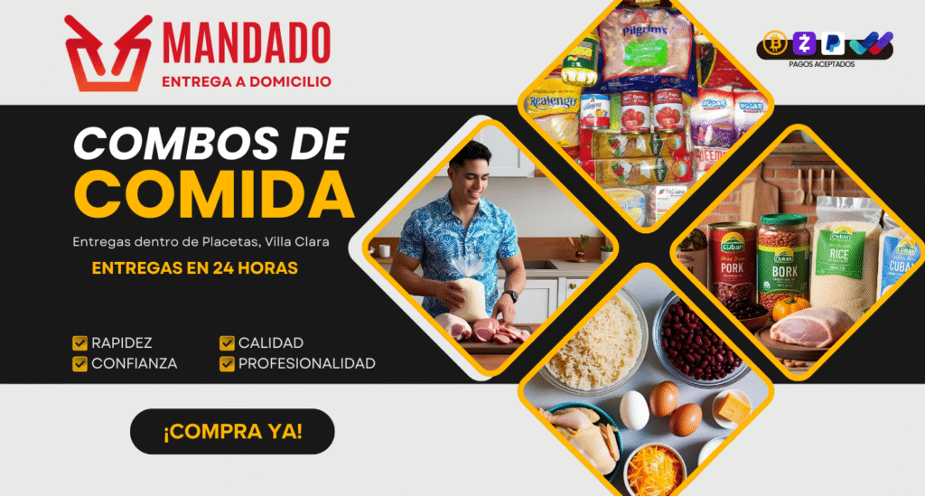 Olvídate de las complicaciones y los intermediarios inciertos. Con nosotros, puedes asegurar que tus familiares en Placetas reciban alimentos frescos y deliciosos directamente en su puerta, pagando cómodamente desde los Estados Unidos.
